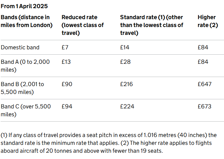 The UK set tax rates on private jets for the period from 1 April 2025 to 31 March 2026. The amount will vary based on the flight distance from London to the destination.