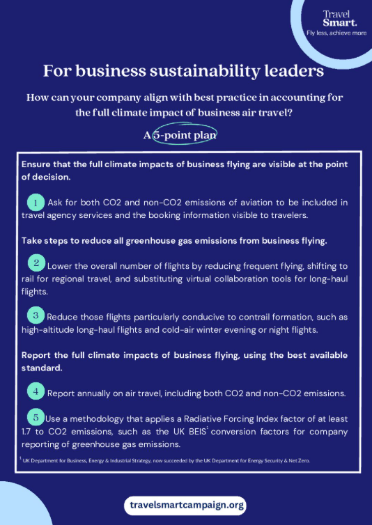 Een robuust reisbeleid is van cruciaal belang voor het terugdringen van de uitstoot van zakenreizen. Het biedt medewerkers richtlijnen voor best practices voor duurzaam reizen en helpt het bedrijf tegelijkertijd zijn milieudoelstellingen te behalen, geld te besparen en het welzijn van medewerkers te beschermen.