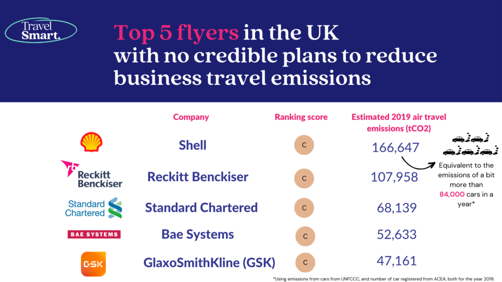 Als de 25 grootste uitstoters in onze ranglijst -50%-doelen stellen voor hun zakelijke reisemissies tegen 2025, zou dit 31% van de reductie over alle bedrijven. Echter, te veel van deze grote uitstoters hebben geen specifieke doelen voor de reductie van zakenreizen. De Travel Smart-campagne roept hen op om emissiereductiedoelstellingen vast te stellen En laat je inspireren door optimale werkmethoden van hun collega's die dat hebben gedaan.